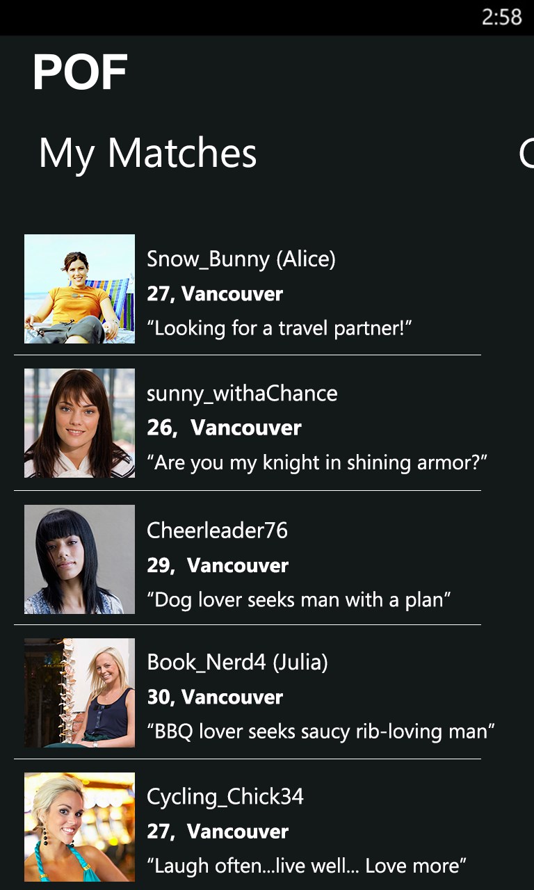 Dazu stellt man noch eine persönliche Frage ein, die für andere Mitglieder sichtbar wird und im Idealfall kreativ, witzig oder auffallend ist. Ziel ist es, sich von der Konkurrenz abzuheben. Wenn du eine Antwort auf deine persönliche Frage erhältst, die dein Interesse erweckt, kannst du den Absender als Candidate akzeptieren und mit ihm bzw. ihr Nachrichten austauschen. Dies gilt natürlich auch für Mitglieder, deren Fragen du beantwortet hast, online dating mit app store für windows.